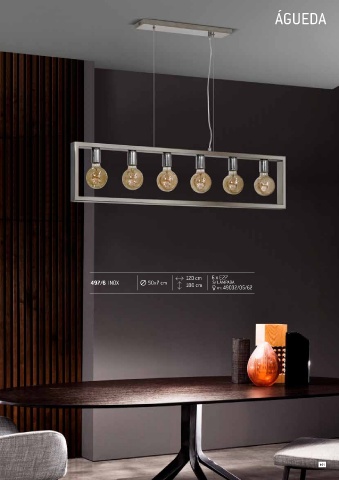 POMBAL ÁGUEDA 489/6 CROMO 27 cm 70 cm 6 x E27 / 60W COR V20 80 cm 120 cm 6 x E27 497/6 INOX 50x7 cm 100 cm S/ LÂMPADA REF: 49032/05/62 140 141
