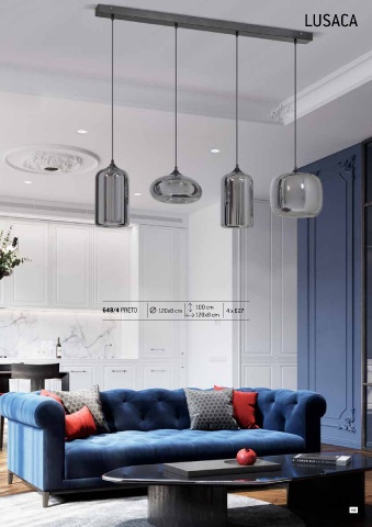 DUALA LUSACA 648/4 PRETO 120x8 cm 100 cm 4 x E27 120x8 cm 647/S TIGER 60x12 cm 100 cm 8 x G9 93x50 cm 144 145
