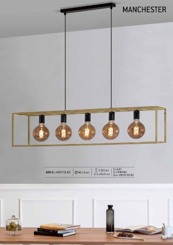 PANAMÁ MANCHESTER 80 cm 4 x GU10 682/4 PRETO 40 x 8cm H 90 cm S/ LÂMPADA H 155 cm 5 x E27 REF: 7306CG/EW 426/5 LATÃO POLIDO 40 x 8 cm S/ LÂMPADA 120x25 cm REF: 49033/05/62 154 155