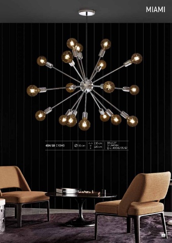 BOSTON MIAMI 100 cm 662/S LATÃO ESCOVADO 15 cm H 80 cm 5 x E27 110 cm 18 x E27 404/18 CROMO 16 cm 120 cm S/ LÂMPADA REF: 49016/05/62 164 165