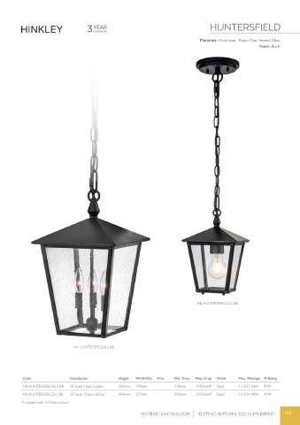 HK-HUNTERSFIELD8-L-BK 3lt Large Chain Lantern 454mm 279mm - 559mm 2105mm* 1 Black 3 x E14 40W IP44
