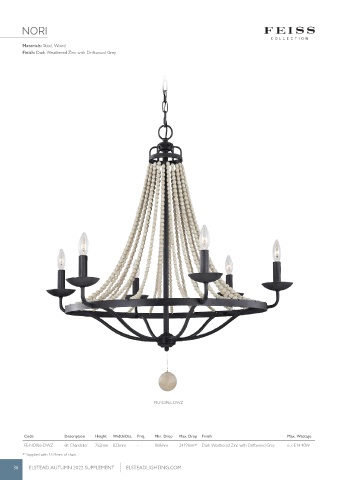FE-NORI6-DWZ 6lt Chandelier 762mm 823mm - 868mm 2419mm* 1 Dark Weathered Zinc with Driftwood Grey 6 x E14 40W