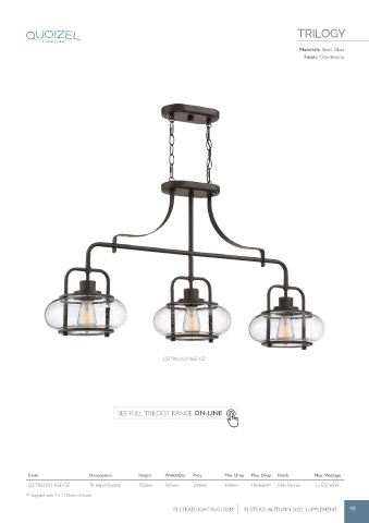 QZ-TRILOGY-ISLE-OZ 3lt Island Pendant 552mm 965mm 254mm 644mm 1864mm* 1 Olde Bronze 3 x E27 60W