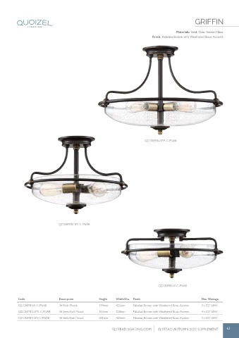 QZ-GRIFFIN-SFS-C-PNAB 3lt Semi-flush Mount 301mm 422mm Palladian Bronze with Weathered Brass Accents 3 x E27 60W