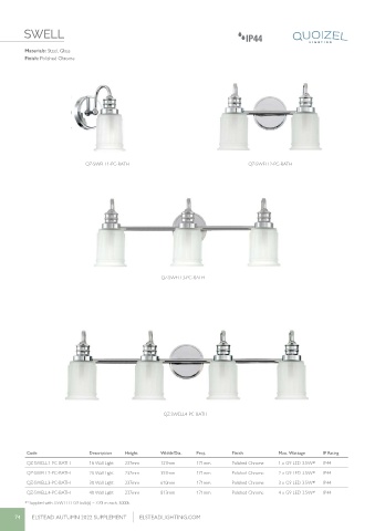 QZ-SWELL3-PC-BATH 3lt Wall Light 237mm 610mm 171mm Polished Chrome 3 x G9 LED 3.5W* 1 IP44