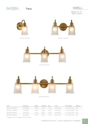 QZ-SWELL3-BB-BATH 3lt Wall Light 237mm 610mm 171mm Brushed Brass 3 x G9 LED 3.5W* 1 IP44