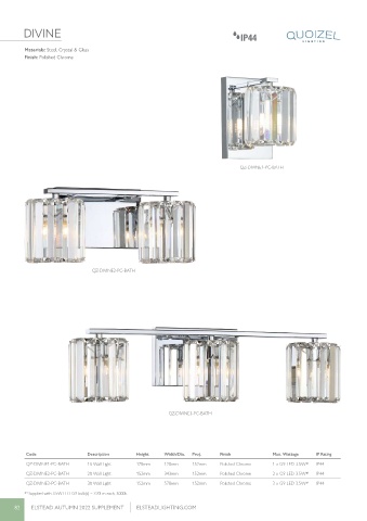QZ-DIVINE2-PC-BATH 2lt Wall Light 152mm 343mm 152mm Polished Chrome 2 x G9 LED 3.5W* 1 IP44