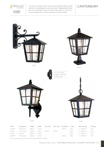 *Guarantee details on p212. ELSTEADLIGHTING.COM COUNTRY TRADITIONAL 115
