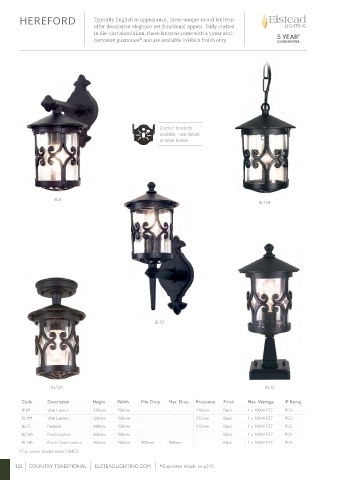 122 COUNTRY TRADITIONAL ELSTEADLIGHTING.COM *Guarantee details on p212.