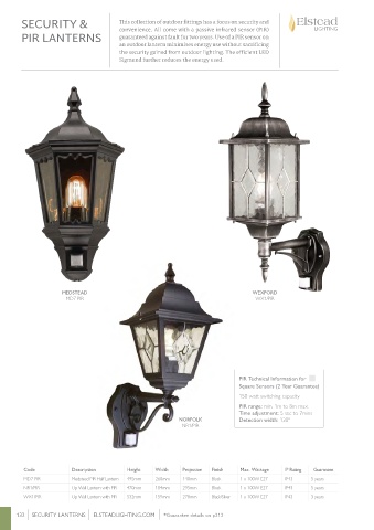 132 COUNTRY TRADITIONAL ELSTEADLIGHTING.COMSECURITY LANTERNS ELSTEADLIGHTING.COM *Guarantee details on p212