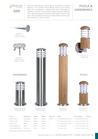 GZ/POOLE MB Mini Bollard 240mm 100mm - 316 Stainless Steel And Teak 1 x 60W E27 Candle IP55