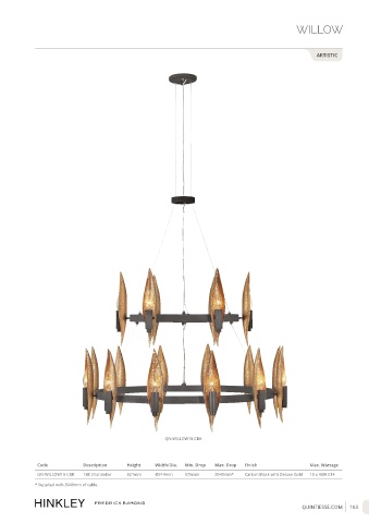QN-WILLOW18-CBK 18lt Chandelier 821mm Ø914mm 875mm 3540mm* Carbon Black with Deluxe Gold 18 x 40W E14