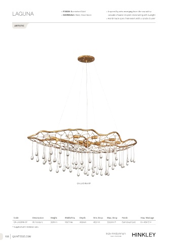 QN-LAGUNA-8P 8lt Pendant 369mm 1067mm 406mm 482mm 3366mm* Burnished Gold 8 x 40W E14