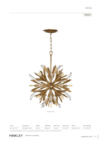 QN-VIDA-13P-S 13lt Small Pendant 660mm Ø559mm 754mm 3753mm* 1 Burnished Gold 13 x 40W E14* 2
