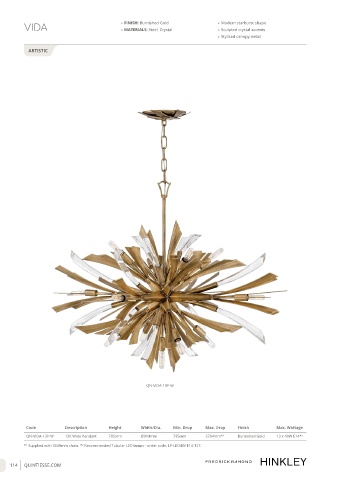 QN-VIDA-13P-W 13lt Wide Pendant 705mm Ø914mm 795mm 3794mm* 1 Burnished Gold 13 x 40W E14* 2