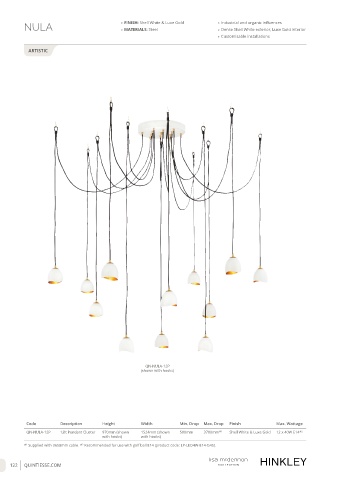 QN-NULA-12P 12lt Pendant Cluster 970mm (shown 1524mm (shown 500mm 3700mm* 1 Shell White & Luxe Gold 12 x 40W E14* 2