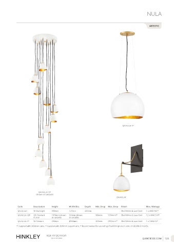 QN-NULA-12P 12lt Pendant 1970mm (shown 374mm (shown 500mm 3700mm* 1 Shell White & Luxe Gold 12 x 40W E14* 3