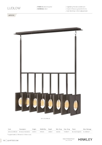 QN-LUDLOW8-GR 8lt Linear Chandelier 550mm 944mm 260mm 666mm 1429mm* Brushed Graphite 8 x 60W E27