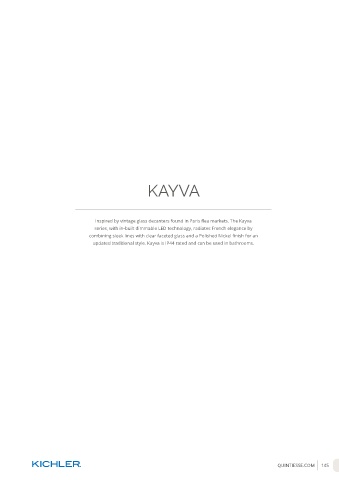 updated traditional style. Kayva is IP44 rated and can be used in bathrooms.