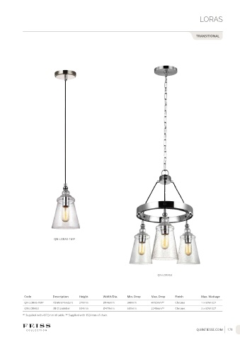 QN-LORAS-1MP 1lt Mini Pendant 270mm Ø146mm 340mm 4792mm* 1 Chrome 1 x 60W E27