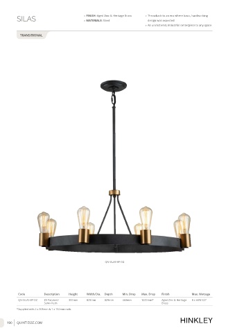 QN-SILAS-8P-DZ 8lt Pendant/ 331mm 829mm 829mm 463mm 1225mm* Aged Zinc & Heritage 8 x 60W E27