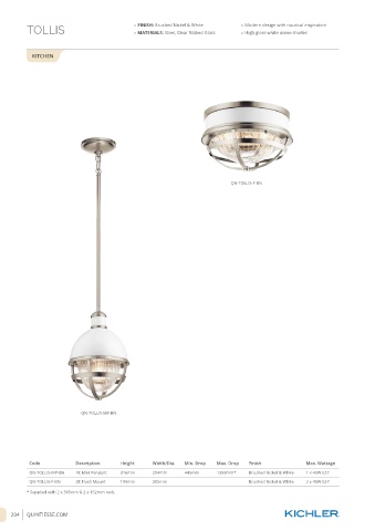 TOLLIS » FINISH: Brushed Nickel & White » Modern design with nautical inspiration