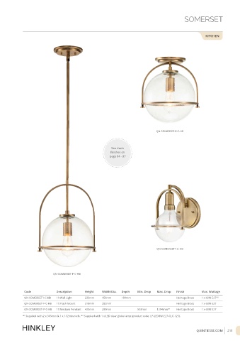 QN-SOMERSET-P-C-HB 1lt Medium Pendant 433mm 289mm 503mm 1294mm* 1 Heritage Brass 1 x 60W E27