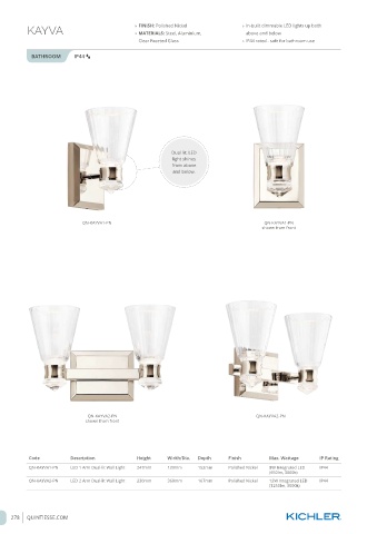 QN-KAYVA1-PN LED 1 Arm Dual-lit Wall Light 247mm 130mm 152mm Polished Nickel 8W Integrated LED IP44