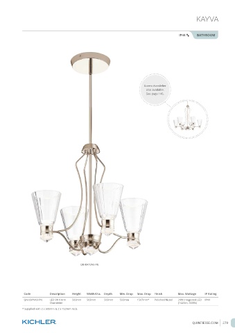 QN-KAYVA9-PN LED 9lt 4 Arm 509mm 503mm 503mm 593mm 1507mm* Polished Nickel 24W Integrated LED IP44
