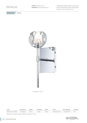 QN-REGALIA1-PC-BATH 1lt Wall Light 346mm 122mm 166mm Polished Chrome 1 x 3W LED G9* IP44