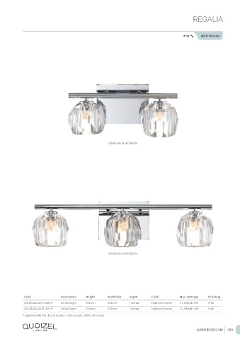 QN-REGALIA2-PC-BATH 2lt Wall Light 152mm 334mm 166mm Polished Chrome 2 x 3W LED G9* IP44