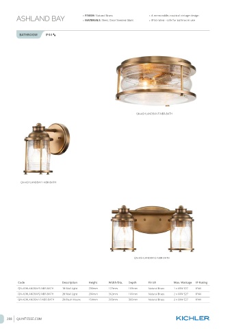 QN-ASHLANDBAY-F-NBR-BATH 2lt Flush Mount 154mm 305mm 305mm Natural Brass 2 x 60W E27 IP44