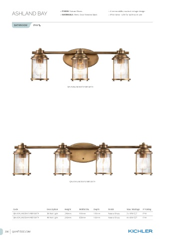 QN-ASHLANDBAY4-NBR-BATH 4lt Wall Light 206mm 858mm 166mm Natural Brass 4 x 60W E27 IP44