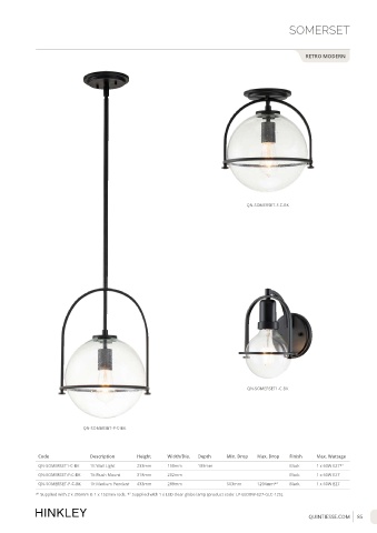 QN-SOMERSET-P-C-BK 1lt Medium Pendant 433mm 289mm 503mm 1294mm* 1 Black 1 x 60W E27