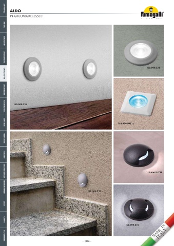 COMPANY ALDO /EͲ'ZKhE ͬZ ^^ SOLAR UP&DOWN DOWNLIGHT 1L0.000.Z1L IN-GROUND BRICKLIGHT FLOODLIGTH 1L0.000.Z1L BOLLARD 1L4.000.LUZ1L BULKHEAD GARDEN URBAN CLASSIC 1L1.000.LUZ1L URBAN MODERN 1L2.000.Z1L POST LAMPS 1L 1L 1L2.000.Z1L REFERENCES - 104 -