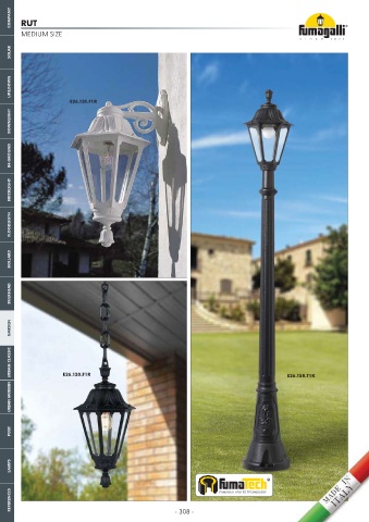 COMPANY RUT MEDIUM SIZE SOLAR UP&DOWN E26.131.F1R DOWNLIGHT IN-GROUND BRICKLIGHT FLOODLIGTH BOLLARD BULKHEAD GARDEN URBAN CLASSIC E26.120.F1R E26.158.T1K URBAN MODERN POST LAMPS REFERENCES - 308 - FUMAGALLI POLES TECHNOLOGY