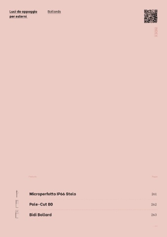 Luci da appoggio Bollards per esterni INDEX Products Pages 16 105 220° 800 53 Microperfetto IP66 Stelo 261 0,95 Kg 158 47 Pole-Cut 80 300 262 158 100 47 820 685 Bidi Bollard 263 70 X,XKg 1,8 Kg 820 685 — 259 1,8 Kg
