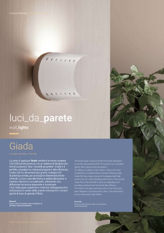 La serie di applique Giada combina le nuove sorgenti The Giada range of wall luminaires have been developed
