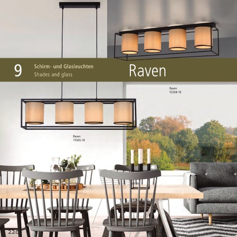 LD-2023_06-09_0628.qxp_Layout 1 21.07.23 15:55 Seite 226 9 Schirm- und Glasleuchten Raven Shades and glass Raven 15304-18 Raven 15305-18 A L W L B m L 1 4 e á 8 1 4 e á 8 1 3 e á 1