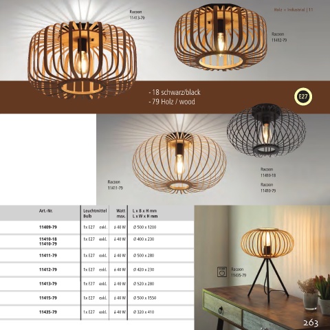 11412-79 1x E27 exkl. á 40 W Ø 420 x 230 Racoon