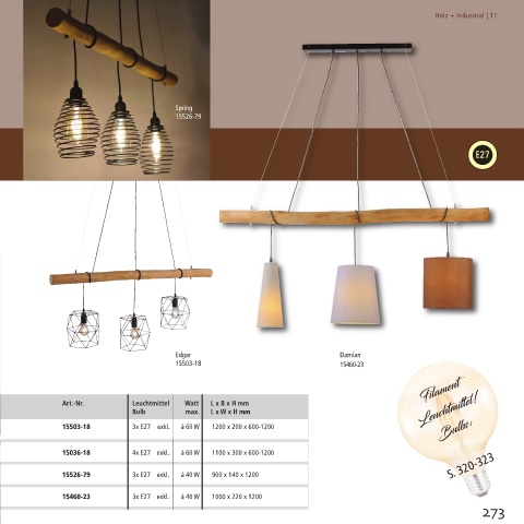15503-18 3x E27 exkl. á 60 W 1200 x 200 x 600-1200 Bulbs: