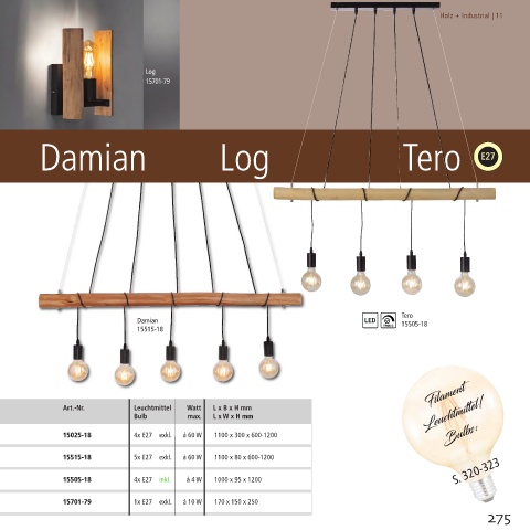 15025-18 4x E27 exkl. á 60 W 1100 x 300 x 600-1200 Bulbs: