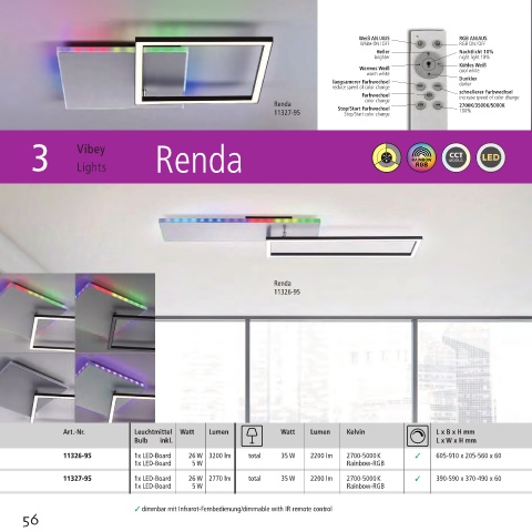11326-95 1x LED-Board 26 W 3200 lm total 35 W 2200 lm 2700-5000 K 605-910 x 205-560 x 60 1 1 1 2 t 1 1 2 3