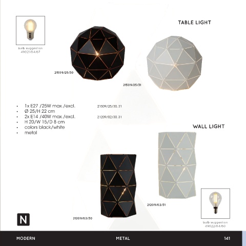 •   1x E27 /25W max./excl.           21509/25/30, 31