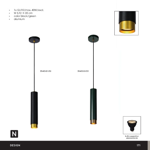• 1x GU10/max. 40W/excl. • W 5,9/ H 30 cm • color black/green • alumium FLORIS 35413/01/30 35413/01/33 bulb suggestion 49006/05/30 DESIGN 171