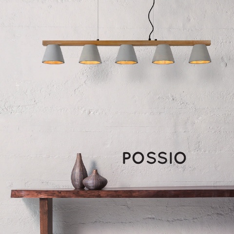 03413/05/41 03213/01/41 • (1x) (5x) E14/40W max./excl. • shade Ø 15/H 11,5 cm • total H 145 max./W 15/L 110 cm 03413/05/41 • H 18/W 15/L 21 cm 03213/01/41 POSSIO • metal, wood & concrete color concrete • bulb suggestion 49046/03/62 INDUSTRIAL 221