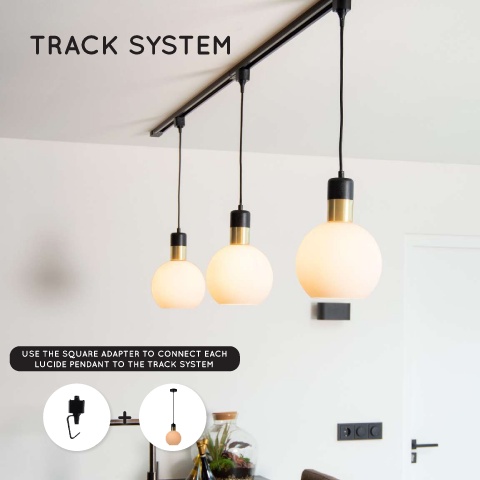 TRACK SYSTEM USE THE SQUARE ADAPTER TO CONNECT EACH LUCIDE PENDANT TO THE TRACK SYSTEM +