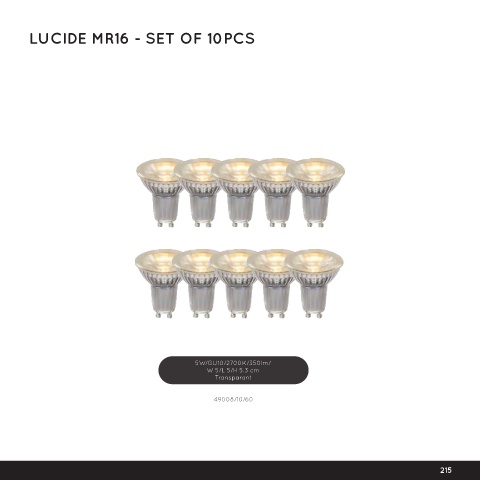 LUCIDE MR16 - SET OF 10PCS 5W/GU10/2700K/350lm/ W 5/L 5/H 5.3 cm Transparant 49008/10/60 215