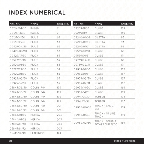 ART. NR. NAME PAGE NR. ART. NR. NAME PAGE NR.