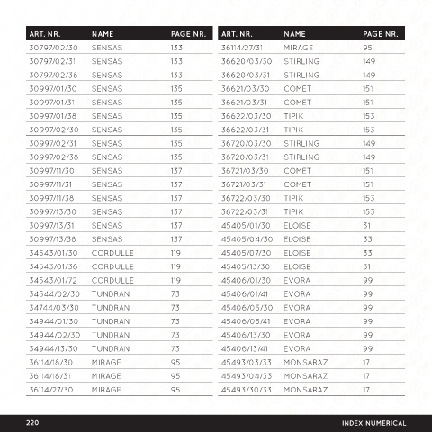 ART. NR. NAME PAGE NR. ART. NR. NAME PAGE NR.